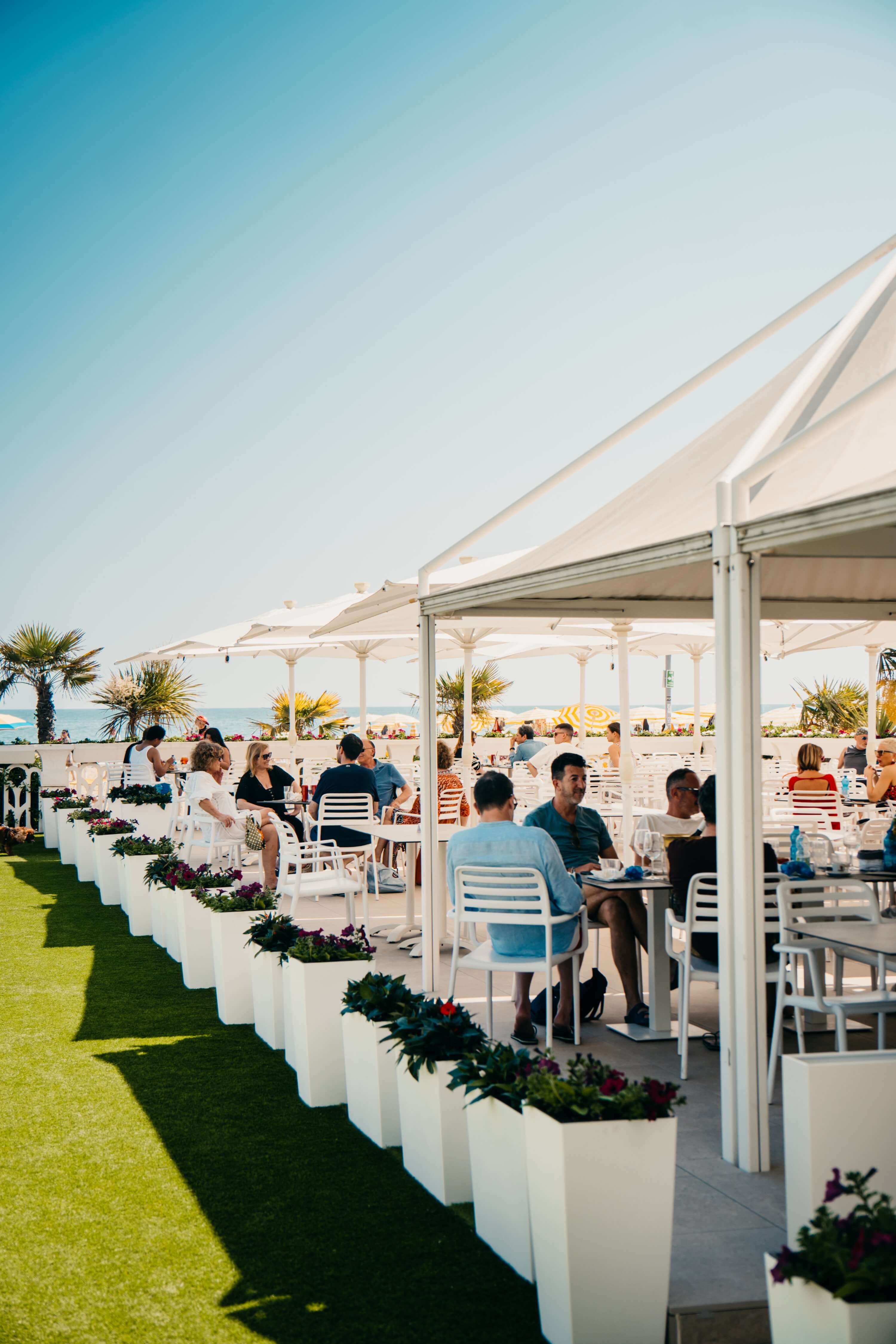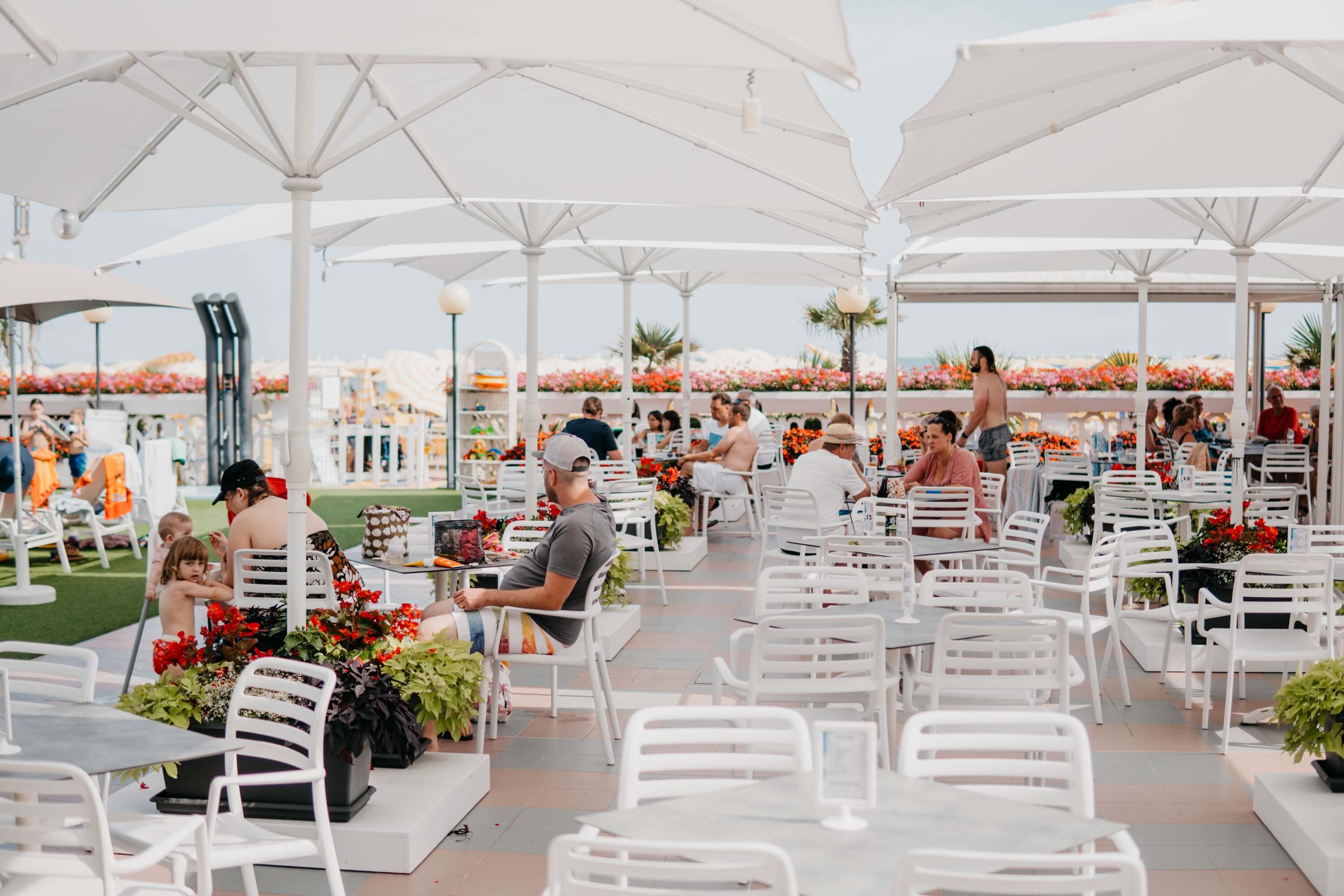 The terrace, equipped with umbrellas, sofas, and tables, is the ideal setting for reading a good book or enjoying a game of cards with friends!